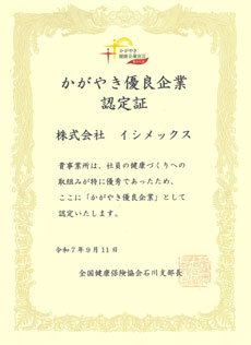 今回「優良企業認定証」を頂きました。